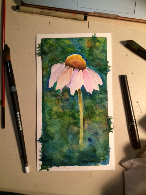 Day 41: watercolor coneflower
