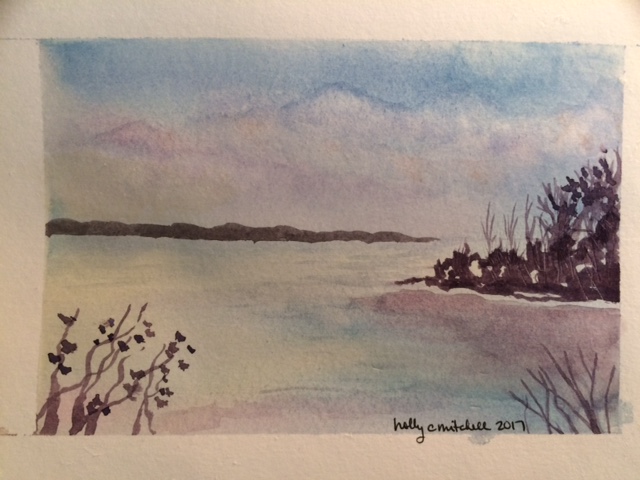 Day 63: (Sat 3/4) watercolor sunset over water