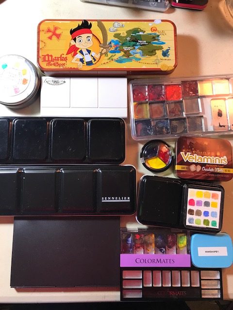 Do not assume because I like my Sennelier palette better, I feel less strongly about this Meeden set. I think it is a tremendous deal. For like $13 on Amazon you get a really nice metal tin and 12 FULL pans. Yes, these are full pans. Full sized EMPTY pans… no paint. I like to be able to use a larger brush without getting it just everywhere. I’m pretty messy. Meeden offers different sizes, larger and smaller, and they offer with or without full or half pans. Really nice prices and a good selection.
