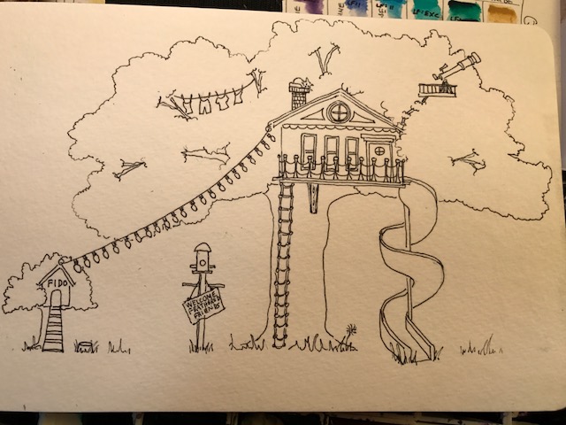 Day 231 (Sat Aug 19) watercolor treehouse 2