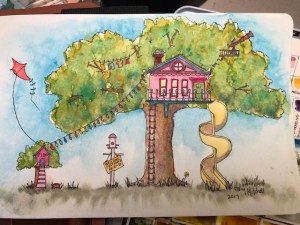 Day 231 (Sat Aug 19) watercolor treehouse 2