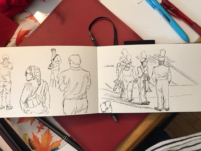 Just practice in sketching figures. I do think I’m better than I was in January. I took a lot of photos of the band. I was in the marching band in high school. We really STUNK, but it still is a good memory.