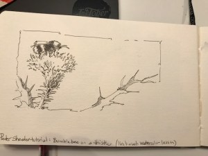 Day 257 (Thurs Sept 14) bee and thistle sketch, part 1