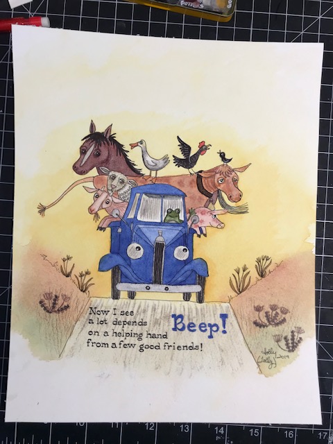 Idea stolen by request of my 2 1/2 year old grandson. He wanted it to hang in his room. If you haven’t read Little Blue Truck to your kiddos, do give it a try! Written by Alice Schertle, illustrated by Jill McElmurry.
