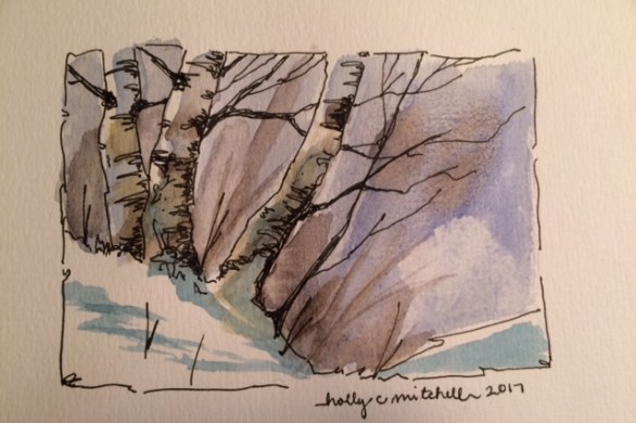 Day 53: (wed 2/22) watercolor birch trees