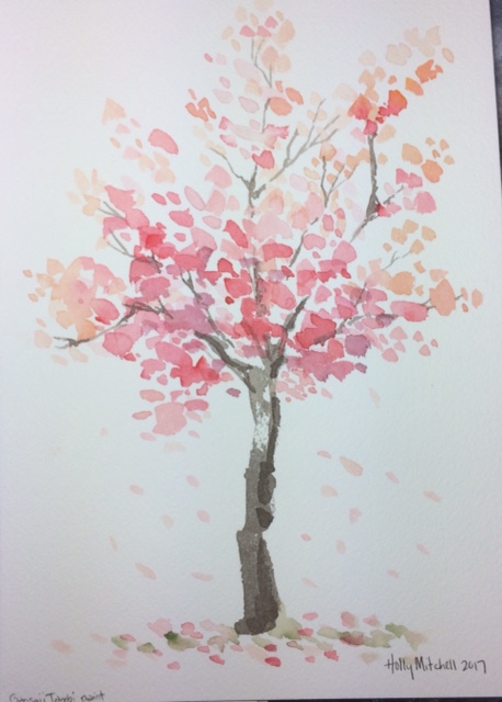 For the tree leaves, we made foil balls about 2″ in diameter, and brushed paint on them, and dabbed them onto the paper all over the branches. I was supposed to use acrylic paint and dip the foil ball in… next time I may try gouache for this. It was fun… try it!