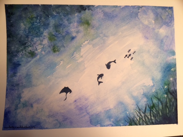 A full month already!! I am 1/12th of the way to my goal. I’m amazed by how much I have learned in just a month. Mostly from youtube tutorials. And I’m back today with another two youtube studies… one watercolor ocean scene, and one water droplet pencil study. Definitely didn’t want to post the droplets, I even tried them three times. First with charcoal on toned paper. Then on pencil on white paper. Then pencil on toned (posted) Well, I’ll keep trying. And while the watercolor was fun to do, I’m not crazy about it either… but hey I can’t just post stuff I like, right?