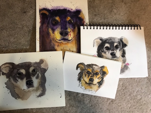 This is my second attempt at my neighbor’s dog… she made me the beautiful pencil holder, remember? And I’m painting her dog in exchange. It is much better than my first attempt, but still looks very little like her, and certainly captures none of her personality. I AM learning things each time, though, so while it frustrates me not to be able to paint what I feel and see, I do see progress with each attempt, and at this point that is more important anyway.