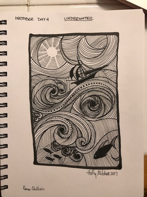 Inktober Day 4… I missed it 😦 It was a very long day. But here it is now… “underwater”… a takje on one of rene quillivic’s wood cuts.