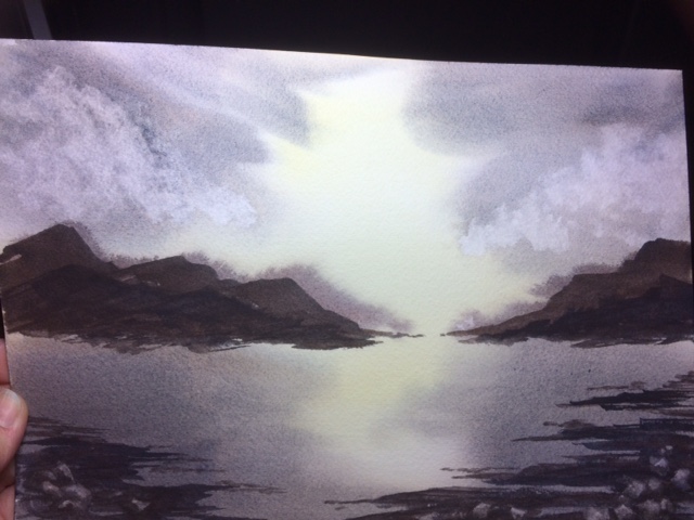 The set came with a number 8 caran d’ache brush as well, which works nicely so far. I followed a video by Myriam Tillson, at a vlog called Myriam’s Illustrations on Youtube. Mine didn’t end up looking much like hers… but enough that I knew I’d better say it was her idea! I think tomorrow I may try a more coloring book type thing.