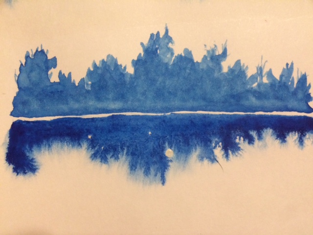 While looking for something for a drawing class I’m taking, I found a tiny little unopened pot of powdered gum arabic. I knew it was used in painting but didn’t know how, so I watched some videos and found that one way it is used is to slow the movement of watercolor. The video shows how to create the impression of a reflection of plants and trees at a river’s edge. The gum arabic used in the video, however is liquid. The powdered pot I have came with a small delicate fountain pen and pot of ink, so I’m fairly certain I’m expected to mix it with the ink (?) but decided to see how it would work in the water reflection test. This probably interests no one but me, sorry.