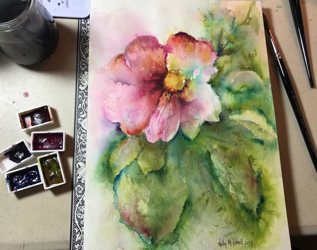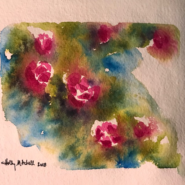 A few things I don’t like much about this, but I still love the way the QoR paints inspire play, and the lovely granulation coming from the tiny addition of EEM’s ‘Tia’. (See my previous several posts for more about Eventually, Everything Mixes watercolor paints.)