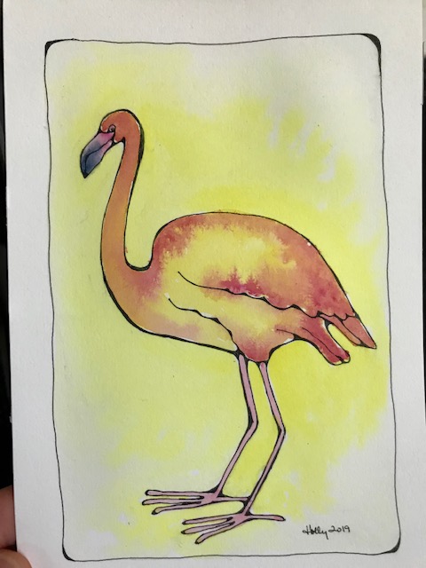 (edit: I attached it to a watercolor card and put a bright yellow envelope with it. Very pretty, and definitely yellow-themed! The intended recipient likes flamingoes, so I think she will enjoy using it!)