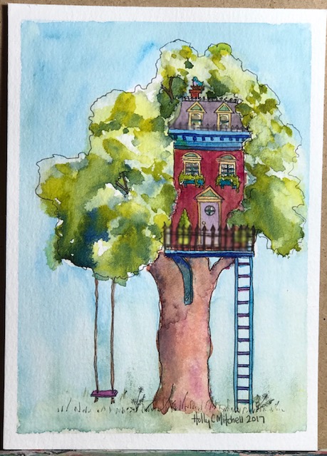 Supplies: Daniel Smith watercolor paint, and M Graham titanium white gouache, “Fluid 100% Cotton Watercolor 300Lb Ez-Block, 6X8” , Uniball Deluxe Micro pen, .5mm, black ink and Uni-Ball Signo 207 Retractable Gel Pen, 0.38mm Ultra-Micro Point, Black.
