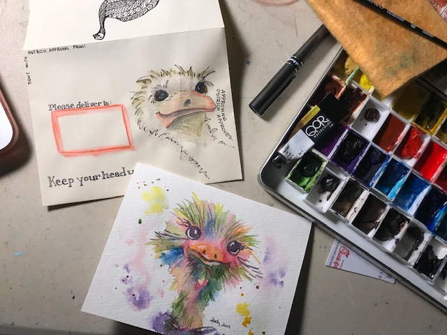 First I want to mention these supplies. I LOVE THESE PENS. Why doesn’t the whole world sing of the virtues of these pens??? At least, the whole art world… There should be sonnets written about them, plaques in their honor, statues set up… I use them for drawing, writing, watercolor sketching, everything… the ink is archival and waterproof, and the ball point pens don’t skip or wear down for me. The retractable signo 207 ultra micro tip is such a fine tip… I love it! I got a few of these pens free from Office Depot, using some of their rewards points I had accumulated with my purchases. I don’t remember exactly what they were priced at, but I think these Amazon prices are comparable. (Definitely shop around, though… the prices on Amazon change frequently!) I have used the micro deluxe for two years now and am pleased to be adding the ultra micro signo. (The signo comes in several line widths, too, so really I could probably just get that in different sizes, and may do that next time I order.)
